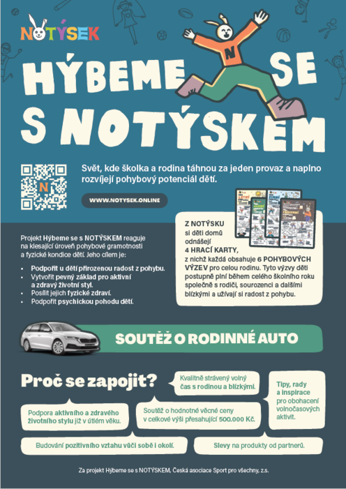 Naše mateřská škola je od září 2024 zapojena do projektu České asociace Sport pro všechny, z.s. „Hýbeme se s Notýskem“.